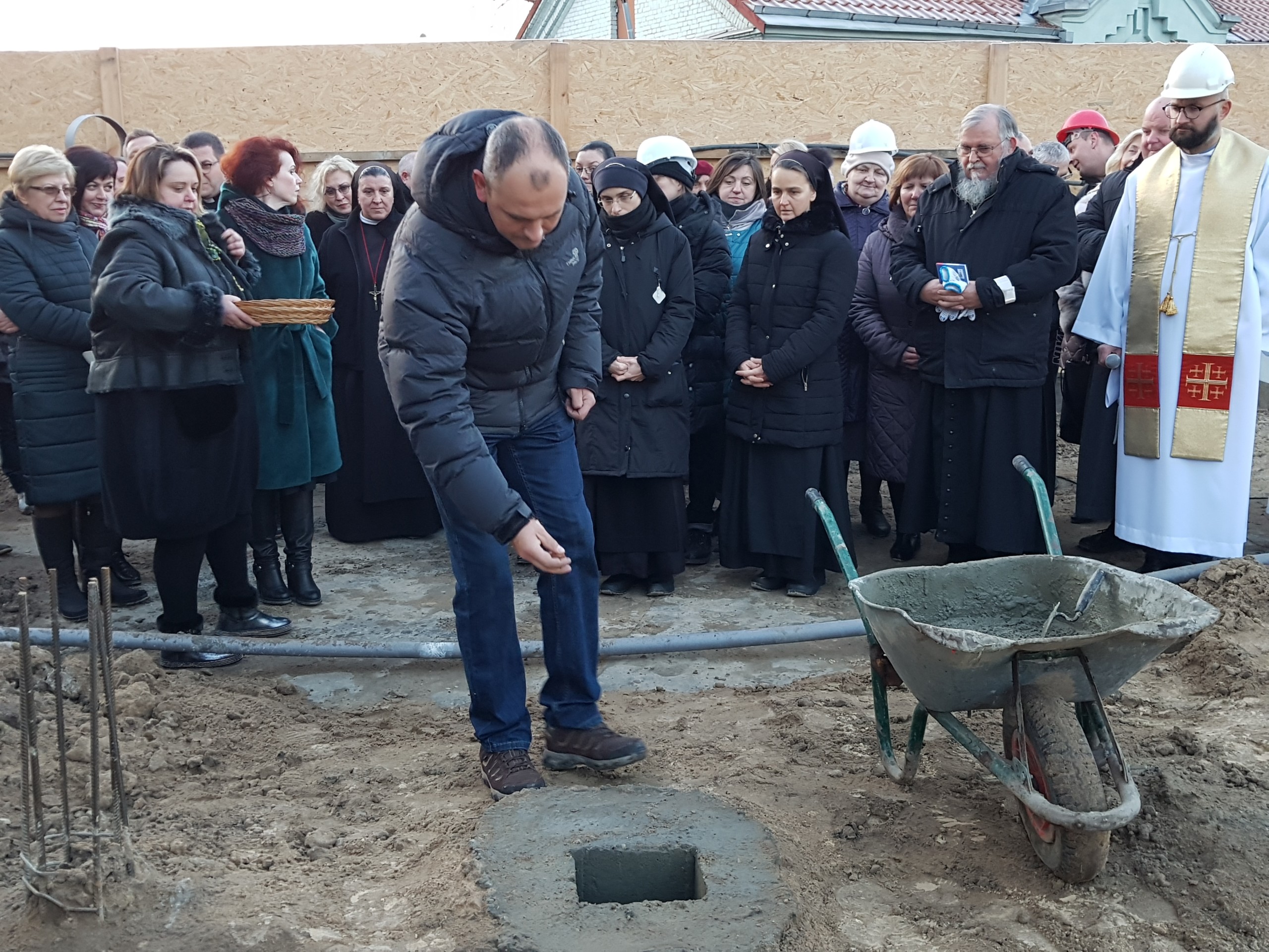 Hospiso direktorė ses. Michaela Rak, dvasininkai, ligonių artimieji, geradariai, aukotojai, darbuotojai bei savanoriai bendroje maldoje, kreipdami žvilgsį į Viešpatį, Jam patikėjo Hospiso vaikų skyriaus pamatinį akmenį. Šis akmuo buvo sudarytas iš daugelio akmenėlių, kurie atkeliavo iš ypatingų žemės